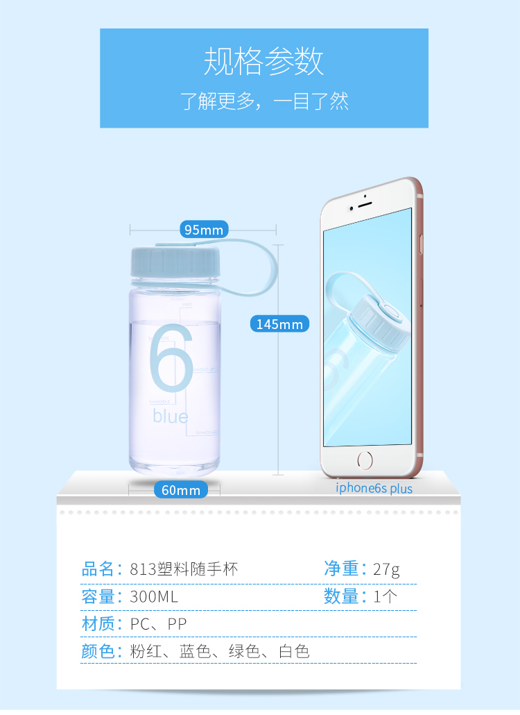產(chǎn)品特點:813塑料隨手杯,300ML容量,材質(zhì):PC/PP,凈重27G,食品級材質(zhì)長期使用對人體沒有傷害
