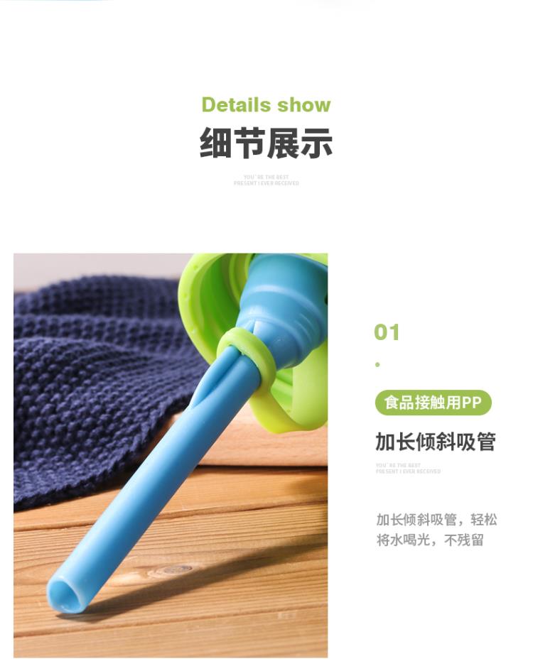 產品特點:鴨嘴式兒童吸管塑料杯,防漏防溢,安全材質,一鍵喝水,5OOML容量,多種顏色選擇,寬口吸嘴喝水更流暢